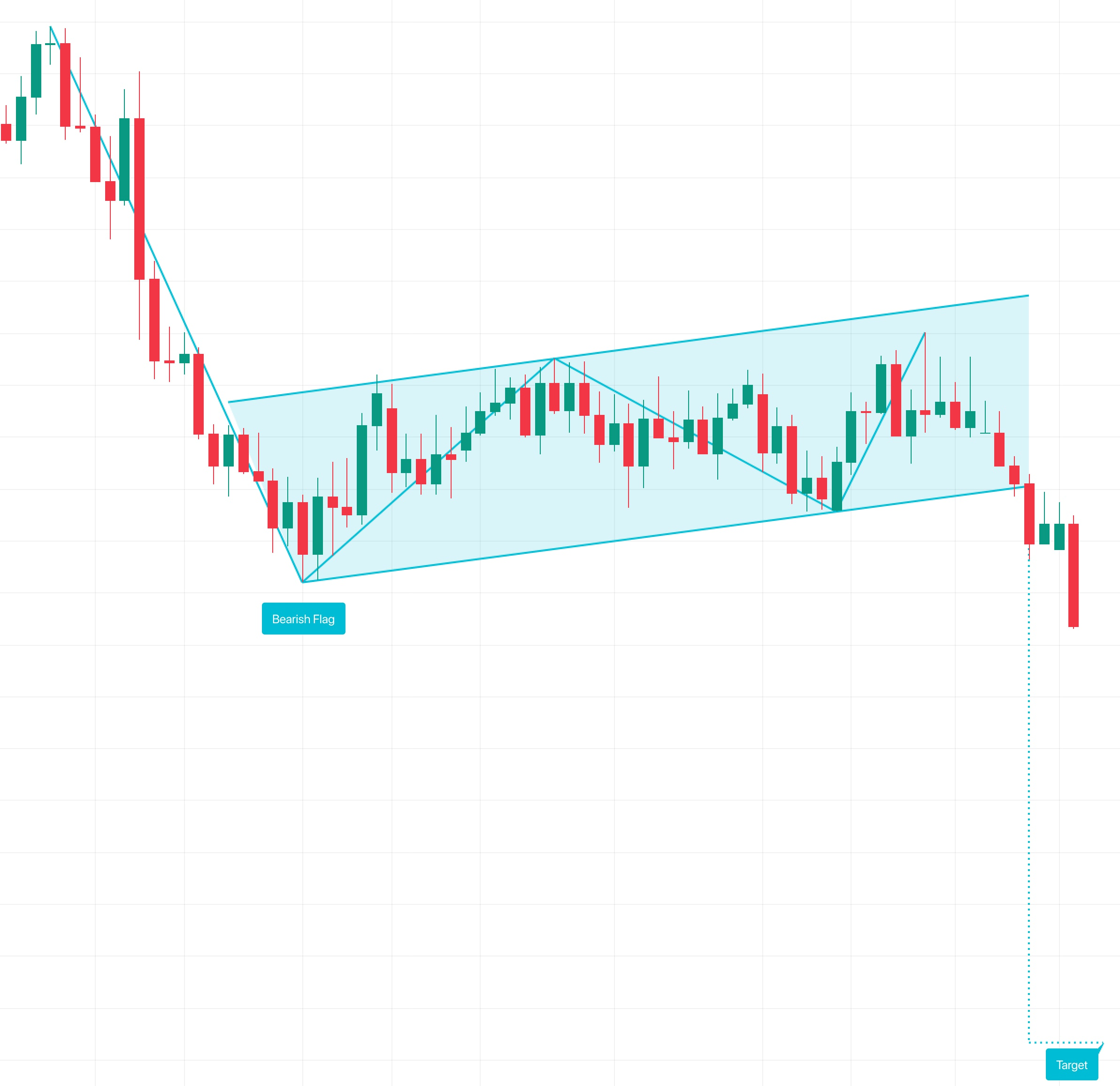 Медвежий флаг — применяемый в техническом анализе графический паттерн, который сигнализирует о продолжении основного тренда после коррекции (консолидации). Линия основного тренда образует "флагшток", а последующая коррекция формирует параллельный канал самого флага (цена в канале не должна подниматься выше середины флагштока). Ожидается, что после того, как цена пробьёт параллельный канал флага (сверху вниз), дальнейшее падение цены будет приблизительно равно размеру флагштока.