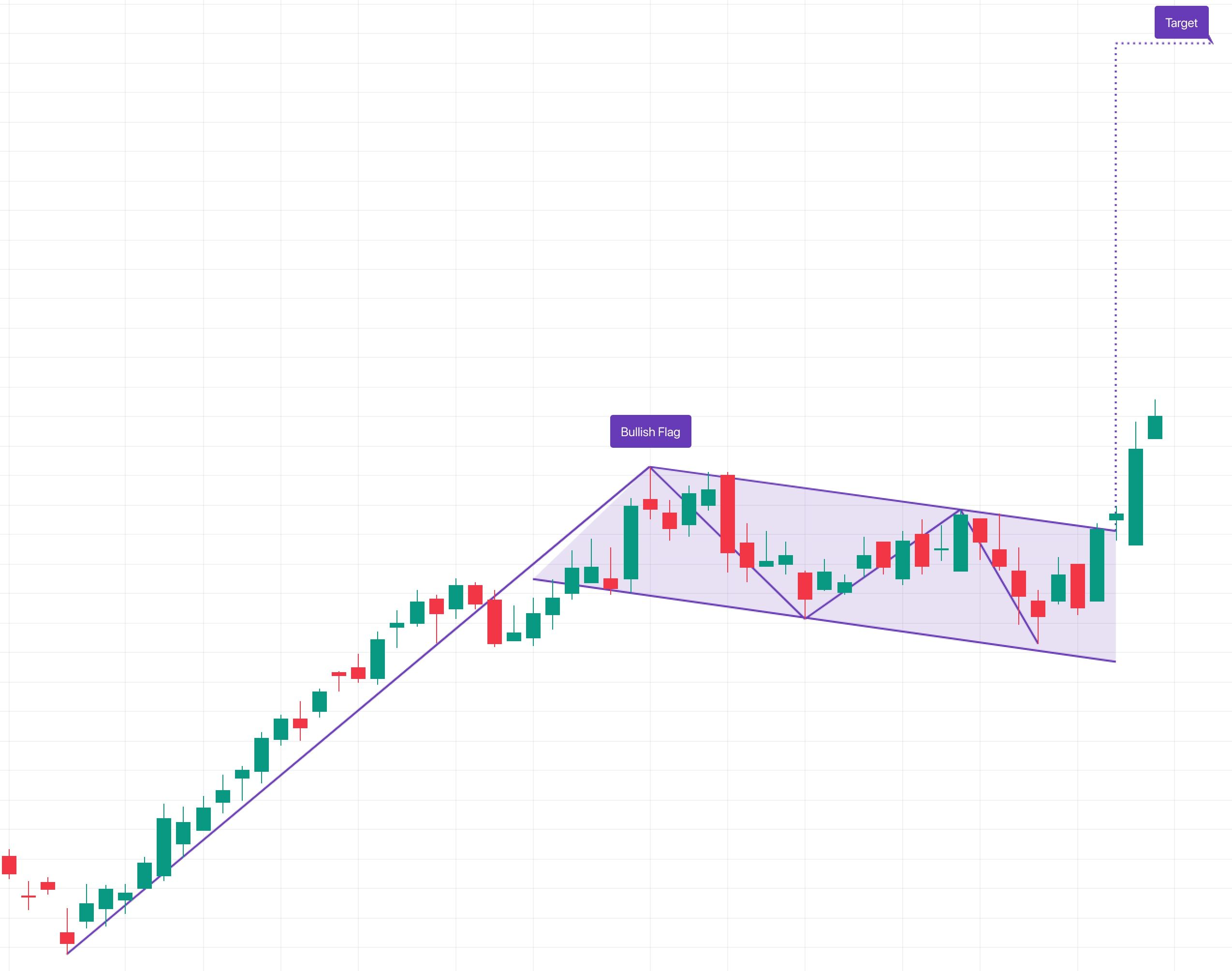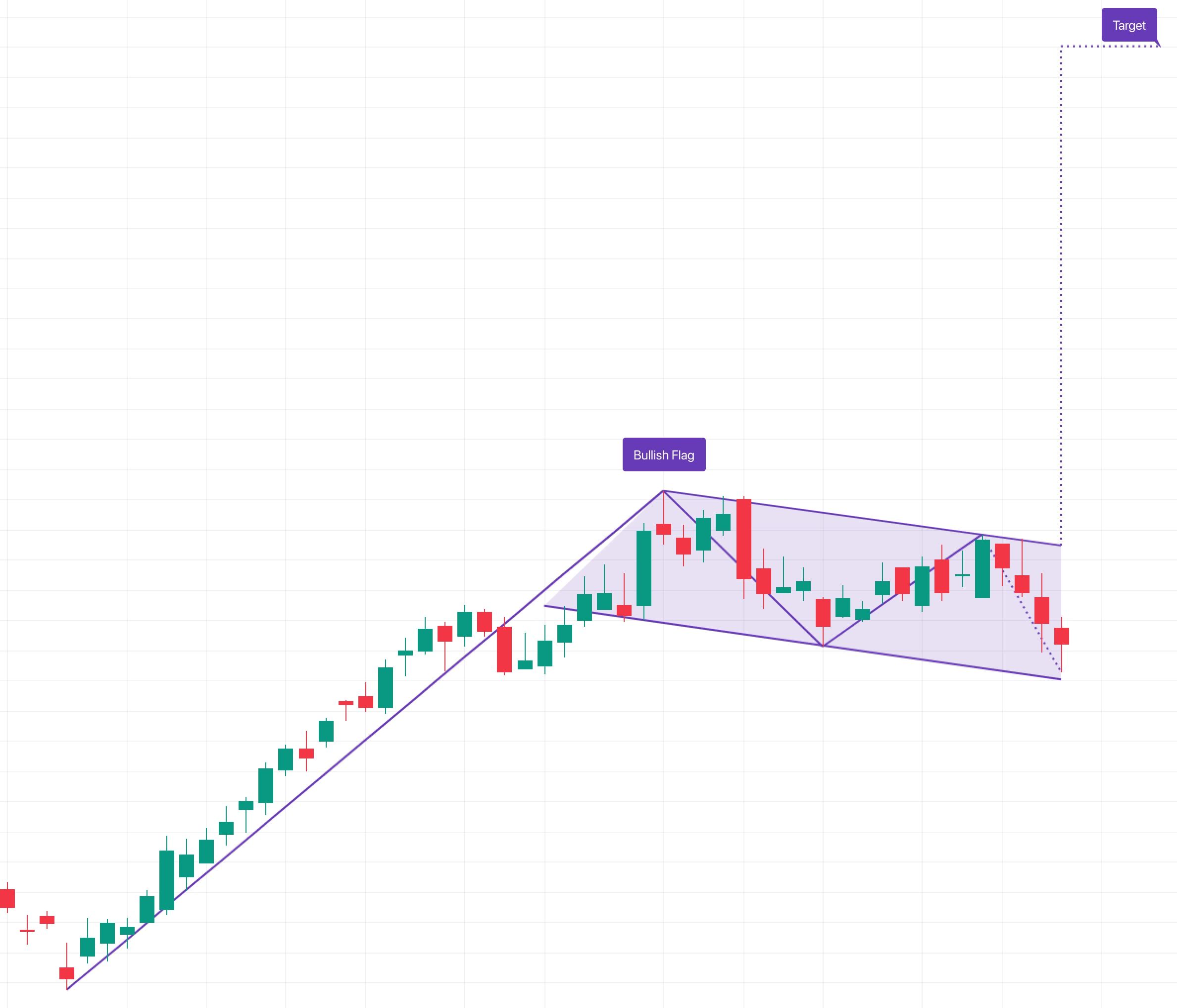 Бычий флаг — применяемый в техническом анализе графический паттерн, который сигнализирует о продолжении основного тренда после коррекции (консолидации). Линия основного тренда образует "флагшток", а последующая коррекция формирует параллельный канал самого флага (цена в канале не должна опускаться ниже середины флагштока). Ожидается, что после того, как цена пробьёт параллельный канал флага (снизу вверх), дальнейший рост цены будет приблизительно равен размеру флагштока.